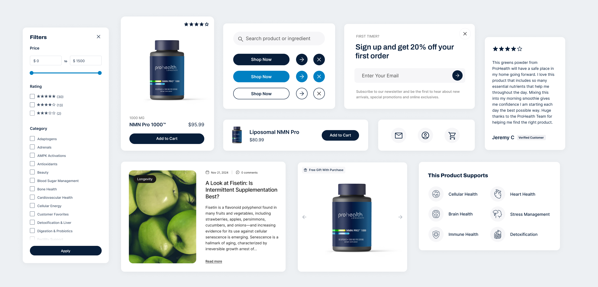 The healthcare industry is one of the largest sectors of the American economy. The importance of accessible care is ever relevant and the industry as a whole is constantly evolving. More recently, the topic of longevity has been at the center of consumer interest. In general, people want to find ways to live longer and better. There is now more scientific research that showcases the ways we can fight aging, and be proactive about our long term health. ProHealth provides clinical grade longevity supplements and pharmaceuticals to the every day consumer. These products have bioactive precursor ingredients that help the cells in your body fight the signs of aging. When I was asked to join the team, the goal was to take an e-commerce business and upgrade it to a Telehealth platform, with informative content, newly introduced features, and quality products that are backed by research.